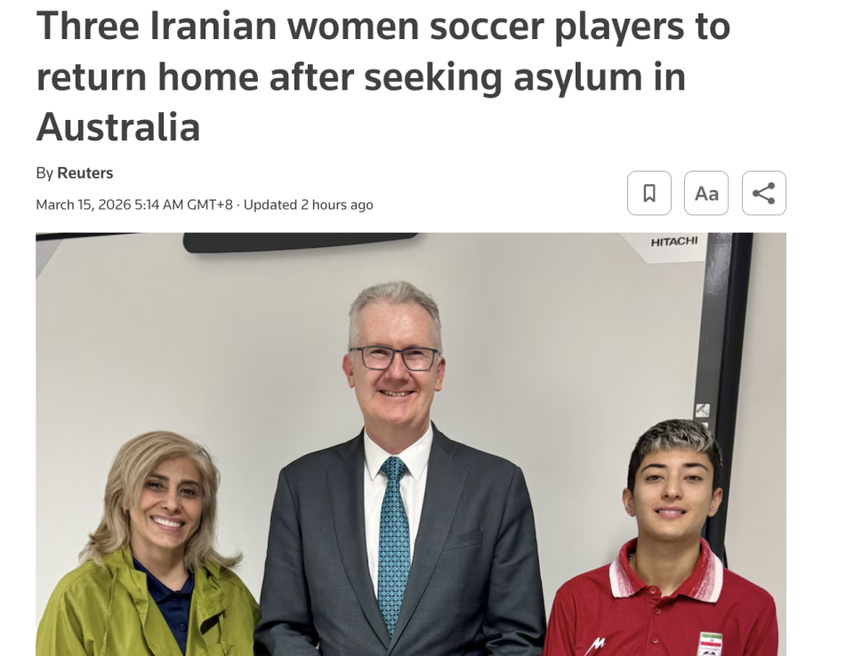 不过,留下的这7名伊朗队员依然缺乏安全感。在考虑再三后,1名伊朗球员于3月11日决定撤回庇护,并主动联系了伊朗大使馆,让对方将其接走。随后,澳大利亚方面转移了剩余6名伊朗女足成员,以保证她们的安全。