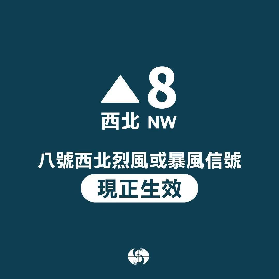 香港天文台已于23日下午2时20分改发八号烈风或暴风信号。